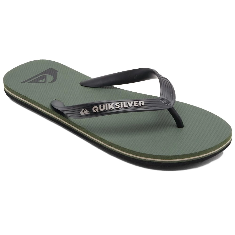 When it comes to easy beach footwear, the Molokai flip-flops are the undisputed kings. Crafted with a clever slip-resistant textured footbed, they feature a bold Quiksilver wordmark logo and a flexible synthetic rubber strap for extra comfort.